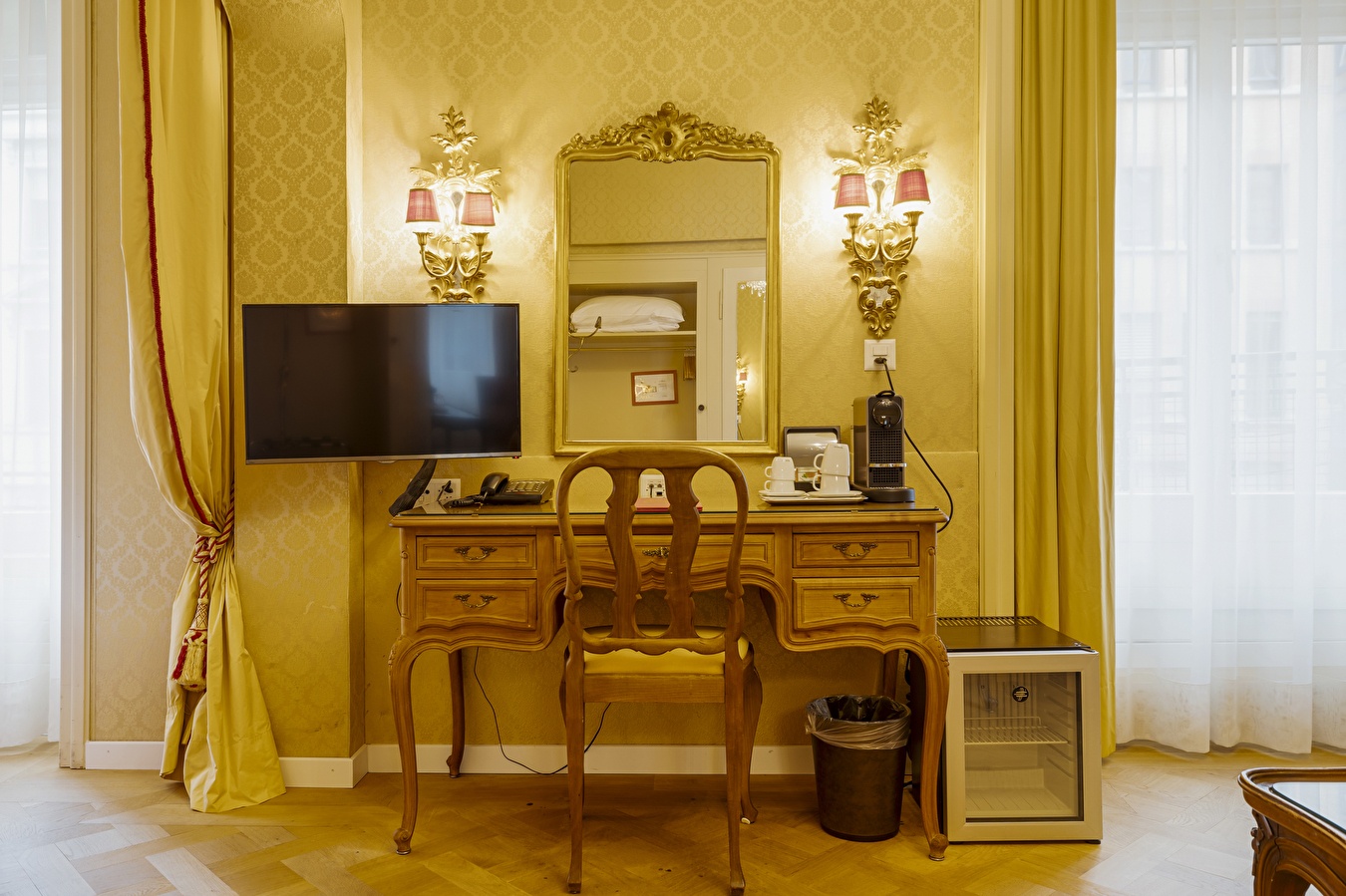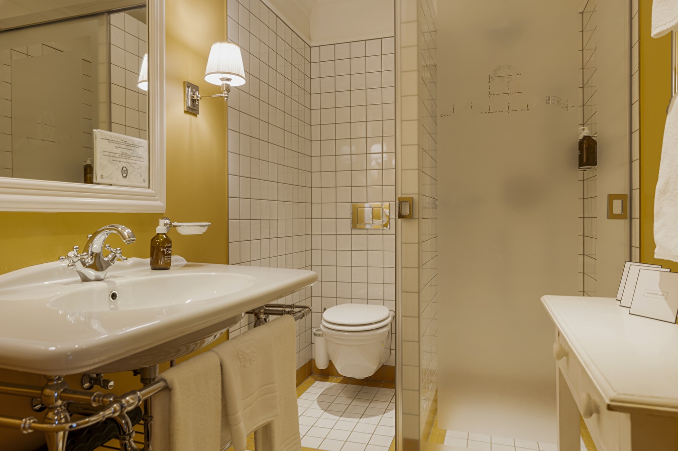 Geräumige Zimmer mit einem Bang & Olufsen TV, Anschlüssen für MP3-Player (iPhones, iPods und verschiedene Mobiltelefone), Kosmetikprodukten von Soeder, einem Badezimmer mit Regendusche, Haartrockner und Schminkspiegel, kostenlosem Mineralwasser, Bademänteln und Hausschuhen sowie der kostenfreien Nutzung des Business Corners rund um die Uhr.